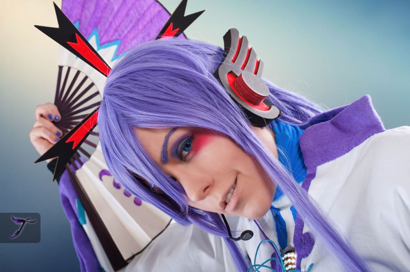 Vocaloid is a Japanese software which produces songs sung by premade syllabic-vocal voicebank. One can make any kind of song by simply inputting lyrics and melody. It was meant to spark a community of fans who make songs with their idols for themselves and others alike. It's a phenomena very popular both Japan and overseas. Voicebanks for numerous versions of this software are provided by people who are generally unknown, with a few exceptions, one of them being the Gackpoid voicebank. Gackpoid, or Kamui Gakupo, is an avatar created for a voicebank provided by famous Japanese singer, Gackt. Among many styles of his, Gackt is usually connected with samurai-like styling, including long hair and traditional outfits, which is what Gakupo's styling was based upon, combined with the fact that there was an obvious lack of quasi-traditional designs among Vocaloid avatars.